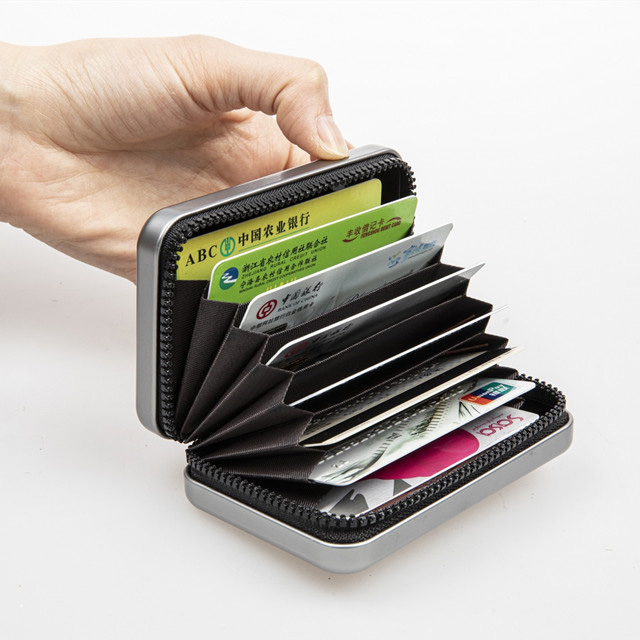 | ထုတ်ကုန်အမည် | ဇစ်ပါသော အလူမီနီယမ် ခရက်ဒစ်ကတ် အိတ်စကို RFID ပိတ်ဆို့ခြင်း။ |
